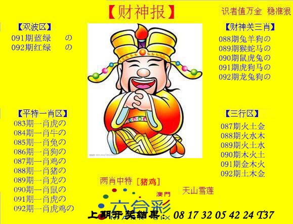 092期: 澳门六合皇彩圖信封【黄财神报】每期自动更新